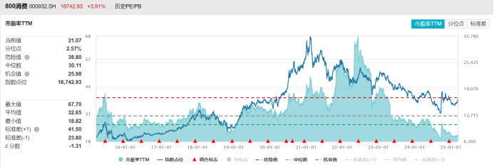注:中证主要消费指数(800消费)目前市盈率情况(截至3月14日收盘)