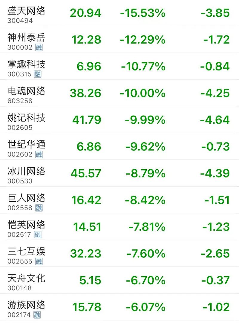 今日早盘,AI概念股再度集体下挫,网游、传媒等应用方向领跌。截至午间收盘,游戏板块中,盛天网络、神州泰岳、掌趣科技跌超10%,电魂网络、姚记科技跌停,世纪华通盘中触及跌停,冰川网络、巨人网络、恺英网络、三七互娱、游族网络跌超6%。