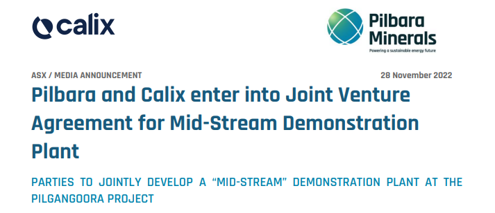 此次,皮尔巴拉矿业已与澳大利亚科技公司CalixLtd.签署了正式合资协议,并于周一发布了一份联合声明。