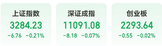 今日大盘缩量调整,三大指数小幅收跌,沪指跌0.21%,深证成指跌0.07%,创业板跌0.02%。