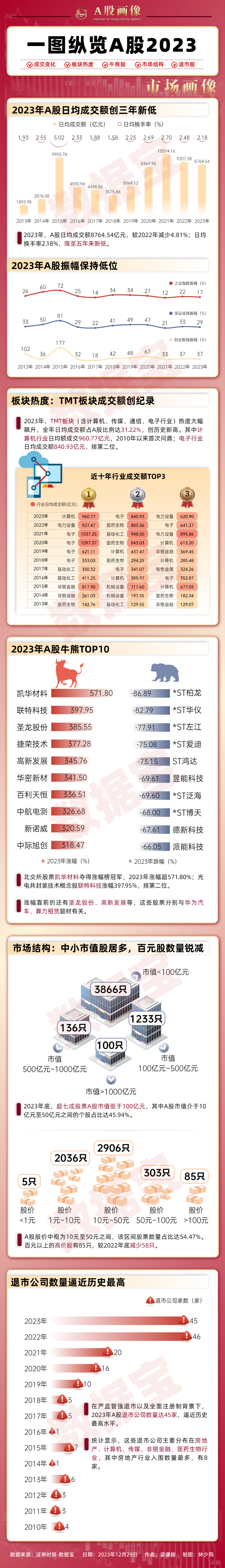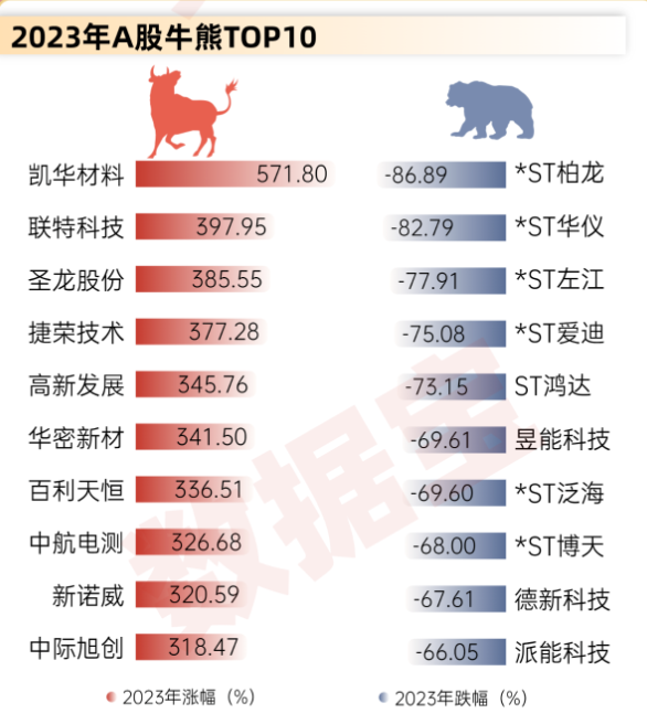 2023A股十大牛熊股出炉:翻倍股扎堆4个行业!TMT成交拥挤度创纪录