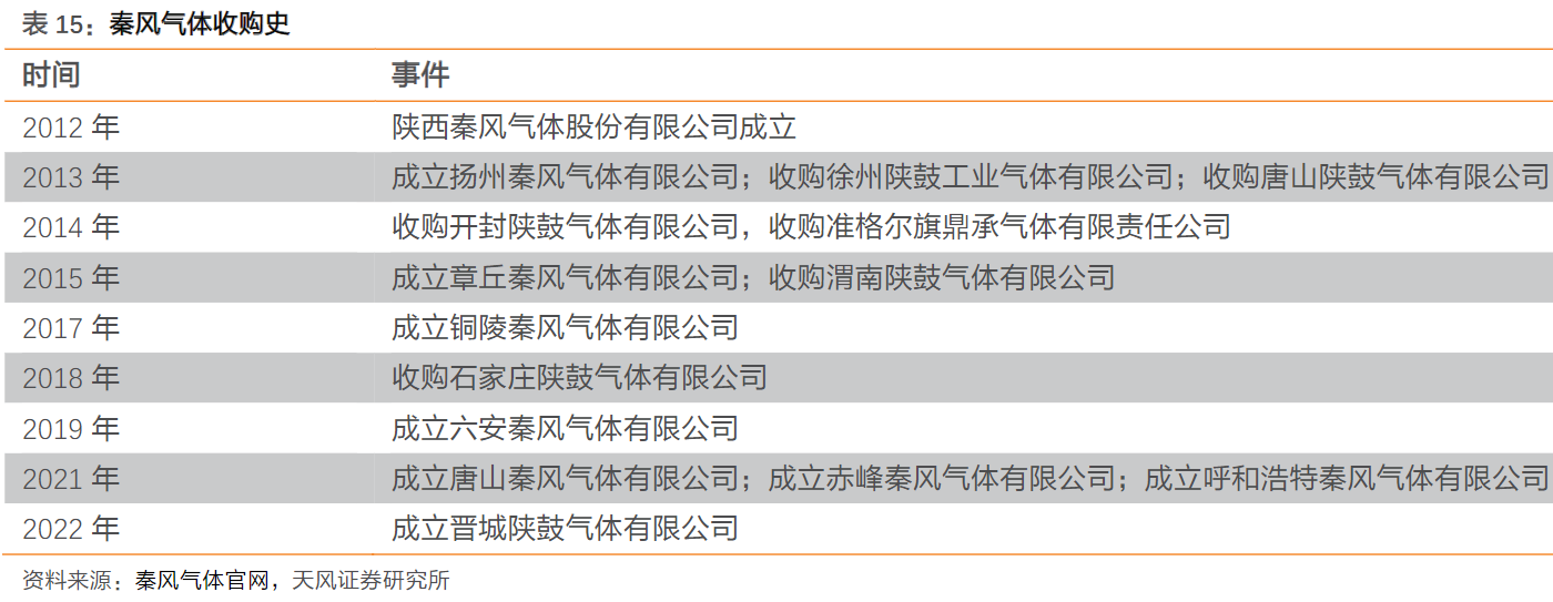 公司重要子公司秦风气体具备气体运营优势,设备切运营,工业气体业务成长空间大,从事工业气体运营主要有两方面的优势,第一是实现空分装置的自供,可以更好解决运营中设备的故障,日常的运营维护中也具备更强的优势。第二是透平机械设备与工业气体几乎都是同样的客户。