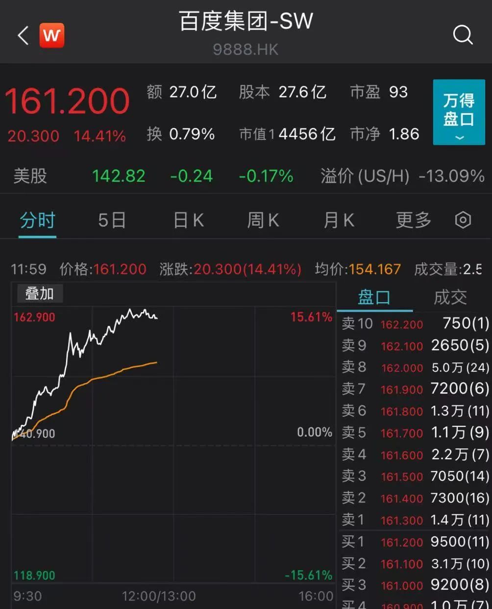港股反弹 百度集团盘中暴涨15%