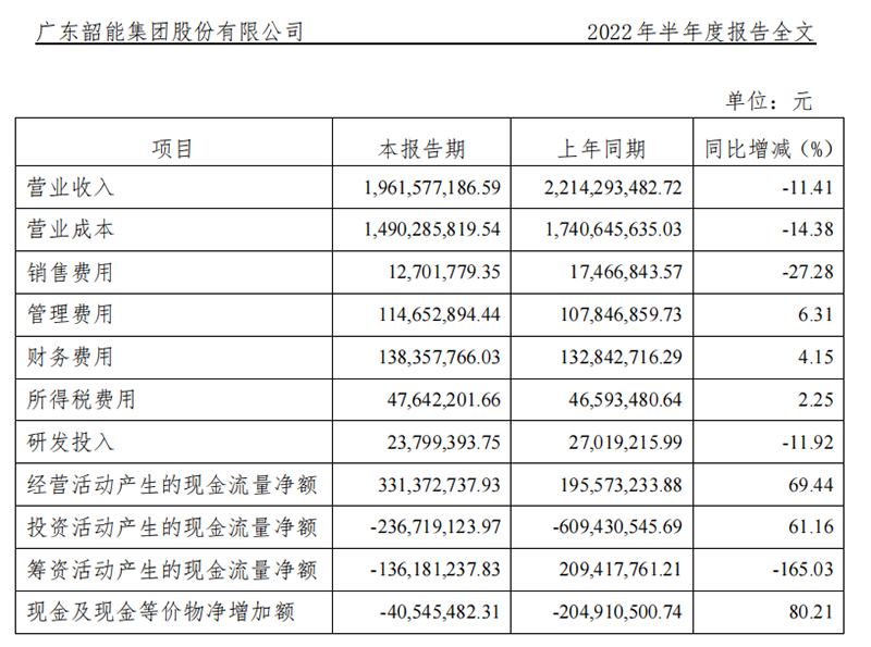 韶能股份8月28日公布2022年半年报显示,今年上半年,公司实现营收 19.62亿元,同比下降11.41%;实现归属于上市公司股东的净利润1.35亿元,同比增长2.46%。