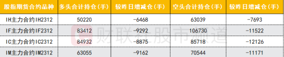 本月期指交割日临近,四大期指主力合约多空双方均大幅减仓,其中IH合约空头减仓数量较多;IF合约空头减仓数量较多;IC合约空头减仓数量明显大于多头;IM合约空头减仓数量较多。