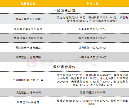 一线游资活跃度一般,CPO概念股五方光电获财通证券杭州上塘路营业部买入1.28亿,该股连续两日获该席位买入。天孚通信获国泰君安南京太平南路营业部席位买入超7000万。