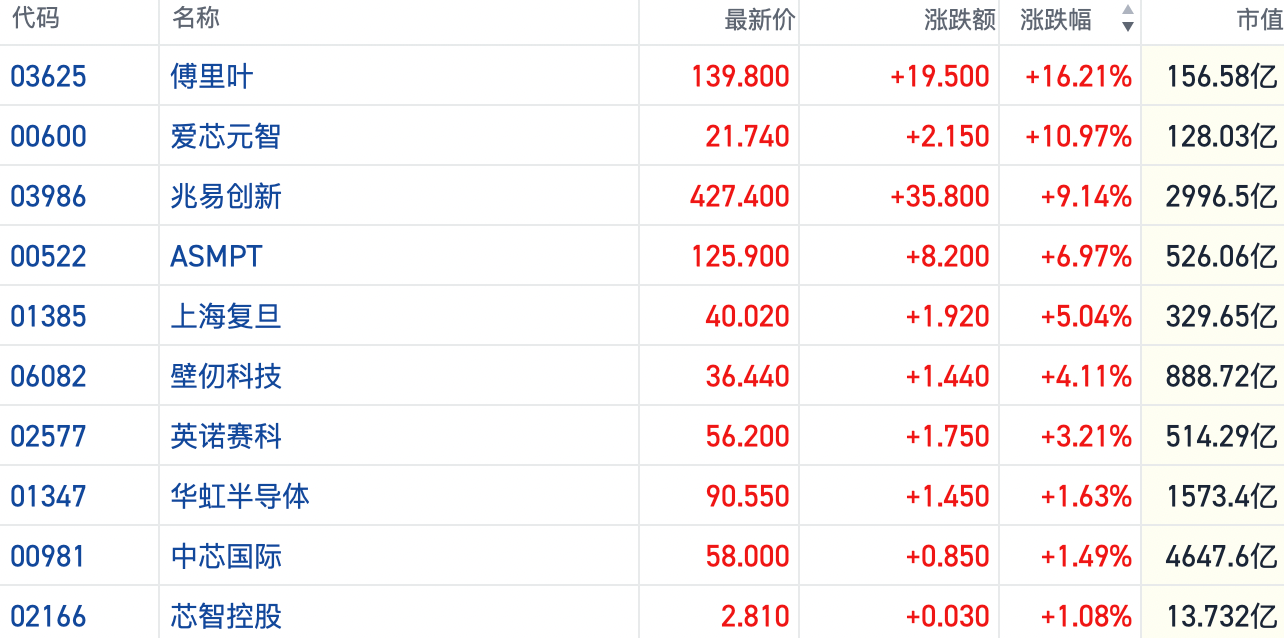 港股芯片股走强傅里叶涨超16% 机构预计AI高景气或带来更多投入