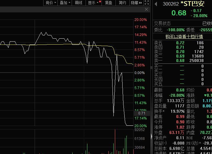*ST巴安尾盘跌停