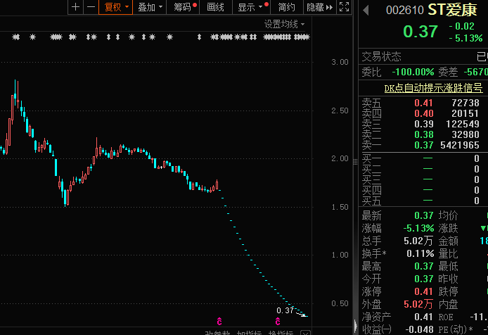 除*ST巴安外,截至今日收盘,ST爱康也连续20个交易日股价低于1元/股,锁定面值退市,该股已连续收获31个跌停。截至5月20日,ST爱康的股东合计近28万户。