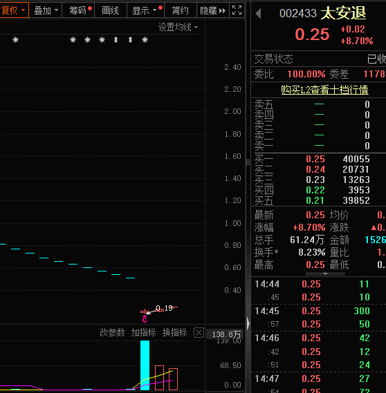与*ST巴安一样,A股市场中还存在多只确定退市后仍有资金流入的个股,如进入退市整理期的太安退,在复牌首日大跌58.82%后,本周一、周二连续涨停,另外中期退昨日也实现涨停。