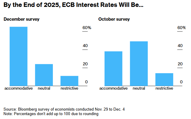 当欧洲央行将第三次降息时间提前到10月时,欧元区的经济形势看起来非常糟糕,以至于官员们争论是否必须随后降息50个基点以避免落后于曲线。随着欧元区第三季度GDP数据好于预期,这一争论有了结果,仅有少数政策制定者呼吁在12月大幅降息。
