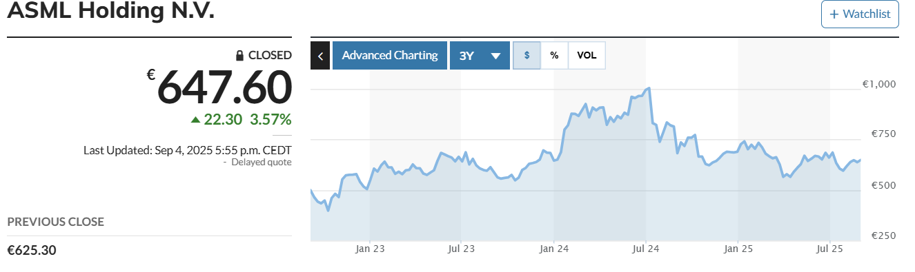 与此同时,华尔街大行美国银行将目标价调整至724欧元,因宏观与地缘政治不确定性下调了三、四季度的阿斯麦订单预期。Erste Group将阿斯麦股票评级由“买入”下调至“持有”,强调对2026年的营收增长前景表示担忧。同样,Freedom Broker在阿斯麦第二季度业绩超预期但对下一季度指引喜忧参半后,也将评级下调至“持有”。