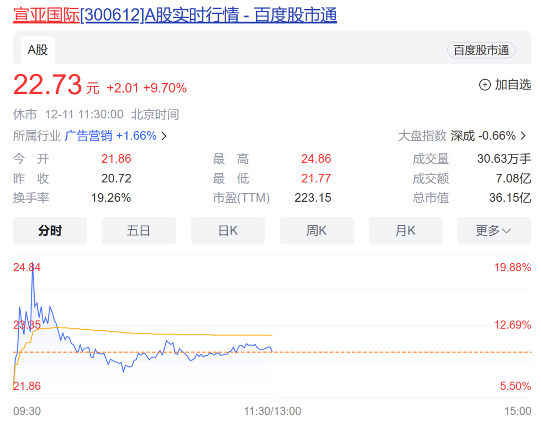 宣亚国际盘中一度触及20%涨停;苏州科达一字涨停,连续第3日封板,估值创3年多来新高;云鼎科技等亦涨停或涨超10%。