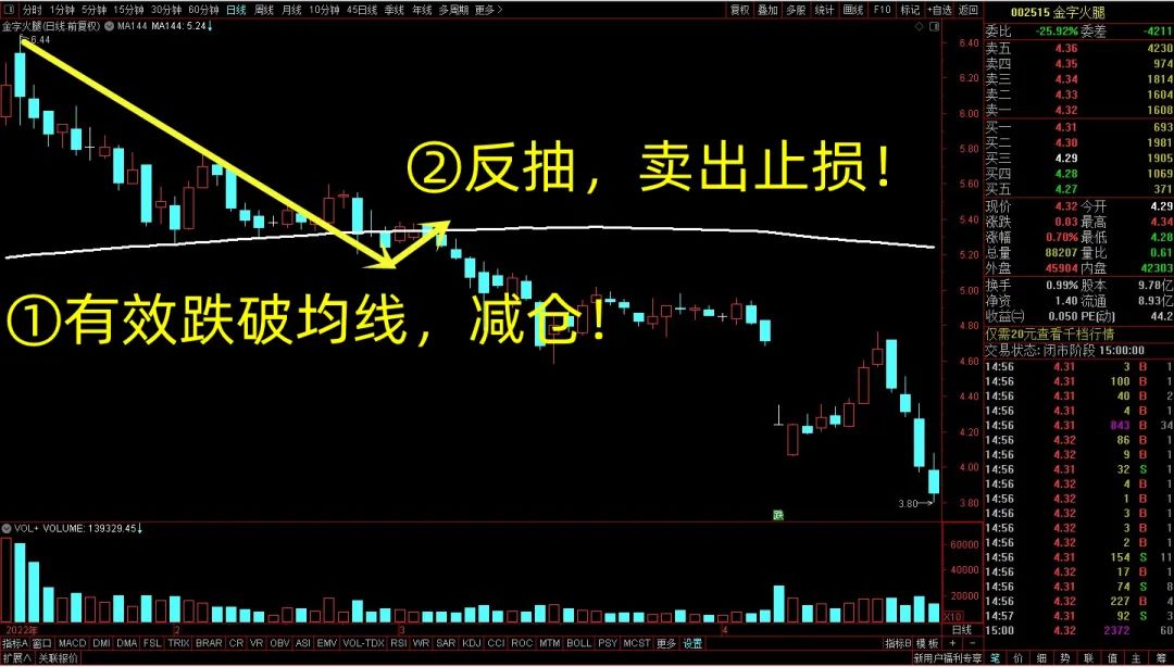 有效跌破144均线,减仓;反抽均线,卖出止损。