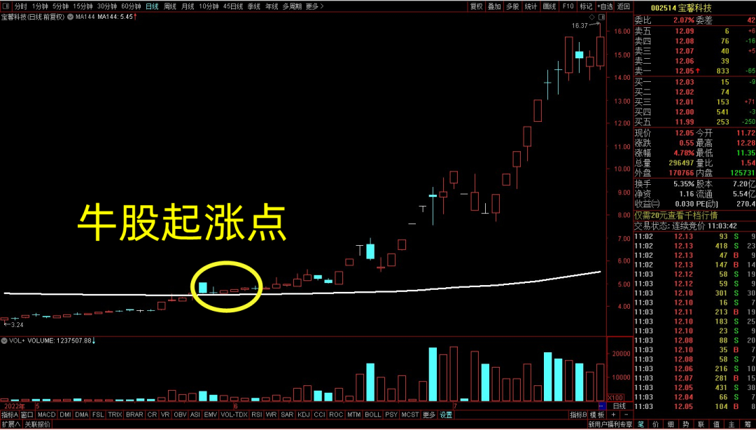 有新题材热点爆发的股票,一旦突破144均线,那么操作成功率与上涨潜力都会有比较大的提升,这就好比风口上猪都会飞起来。