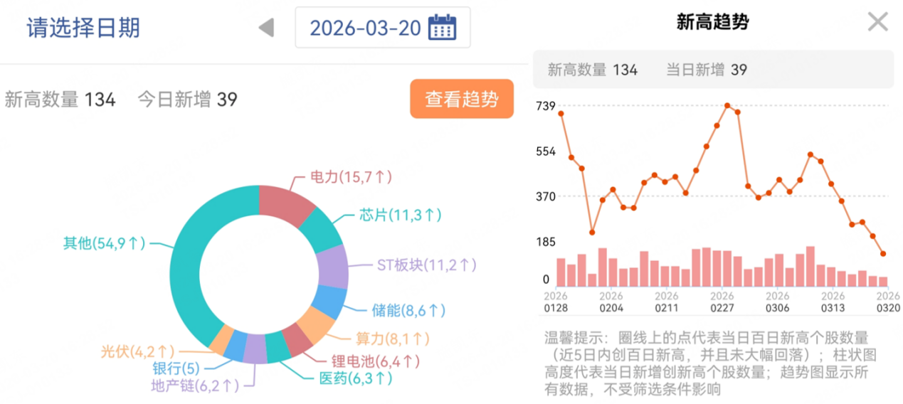 从百日新高去看,板块新高数量前4:电力>芯片>ST板块>储能