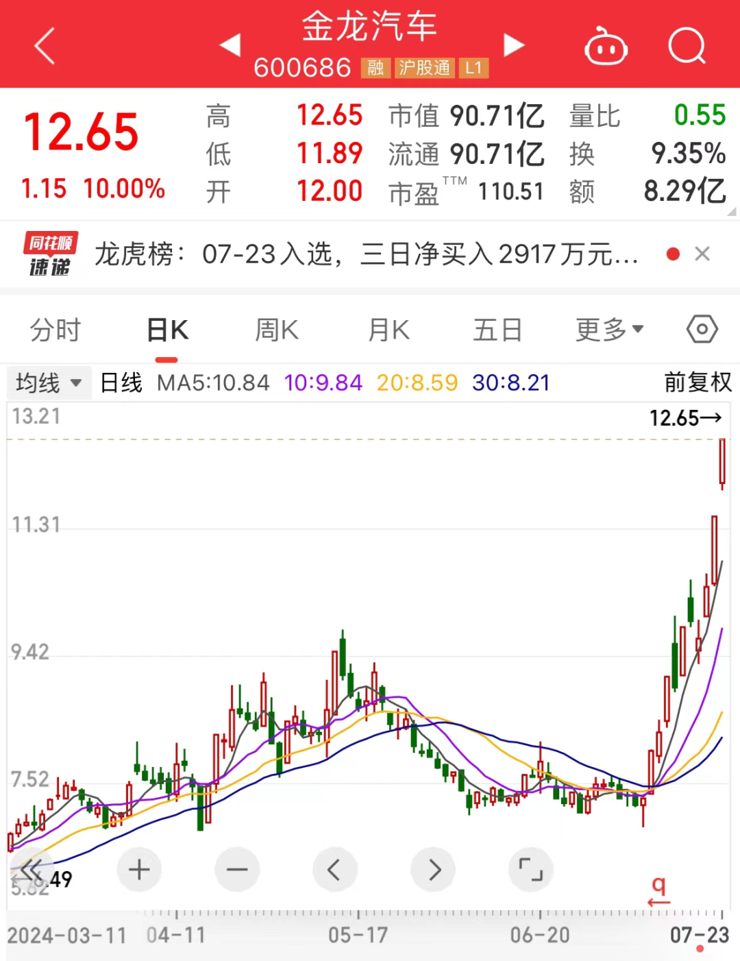 金龙汽车股价自7月10日开始异动,连续三周大涨,这期间收获4个涨停板。根据公司定期报告,公司自主研发自动驾驶系统的应用层关键技术,提升性能,包括规划控制、感知融合、高精地图、系统集成、车路协同等。另外,公司开发了自动驾驶系统的HIL仿真平台,可模拟各种测试场景,评估自动驾驶系统的性能和安全性。