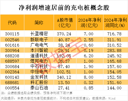 长盈精密、新联电子、广电电气、道通科技、煜邦电力、中石科技等概念股在上一年盈利的情况下,2024年净利润大幅增长。以道通科技为例,公司预计2024年净利润为6.2亿元至6.8亿元,同比增长245.92%至279.39%。报告期内,公司紧抓海外新能源充电行业发展机遇,深耕数字能源海外市场,打造了端到端智能充电网络解决方案,并结合生成式AI技术,构建垂域大模型打造一站式光储充能源管理解决方案,行业影响力持续提升,2024年公司数字能源业务实现营业收入约8.3亿元至8.9亿元。