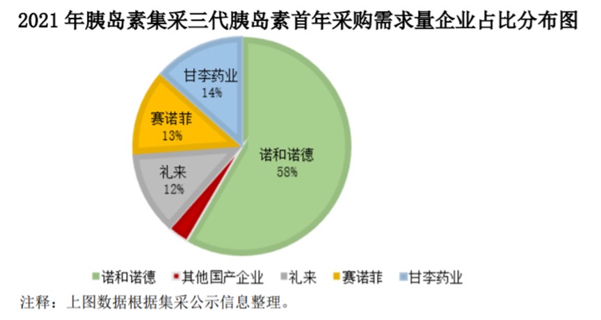 不过,通过此次集采数据可以发现,三代胰岛素需求量为1.24亿支,占比约56%,明显高于二代胰岛素的9000万支。同时,通过集采使得三代胰岛素价格大幅下降,已基本与二代胰岛素持平,或将加速其在国内市场渗透率的提升,公司也借此机会直接从外资企业手中获得了可观的分配量,市场份额达到14%左右,在国产企业中占比份额最大。