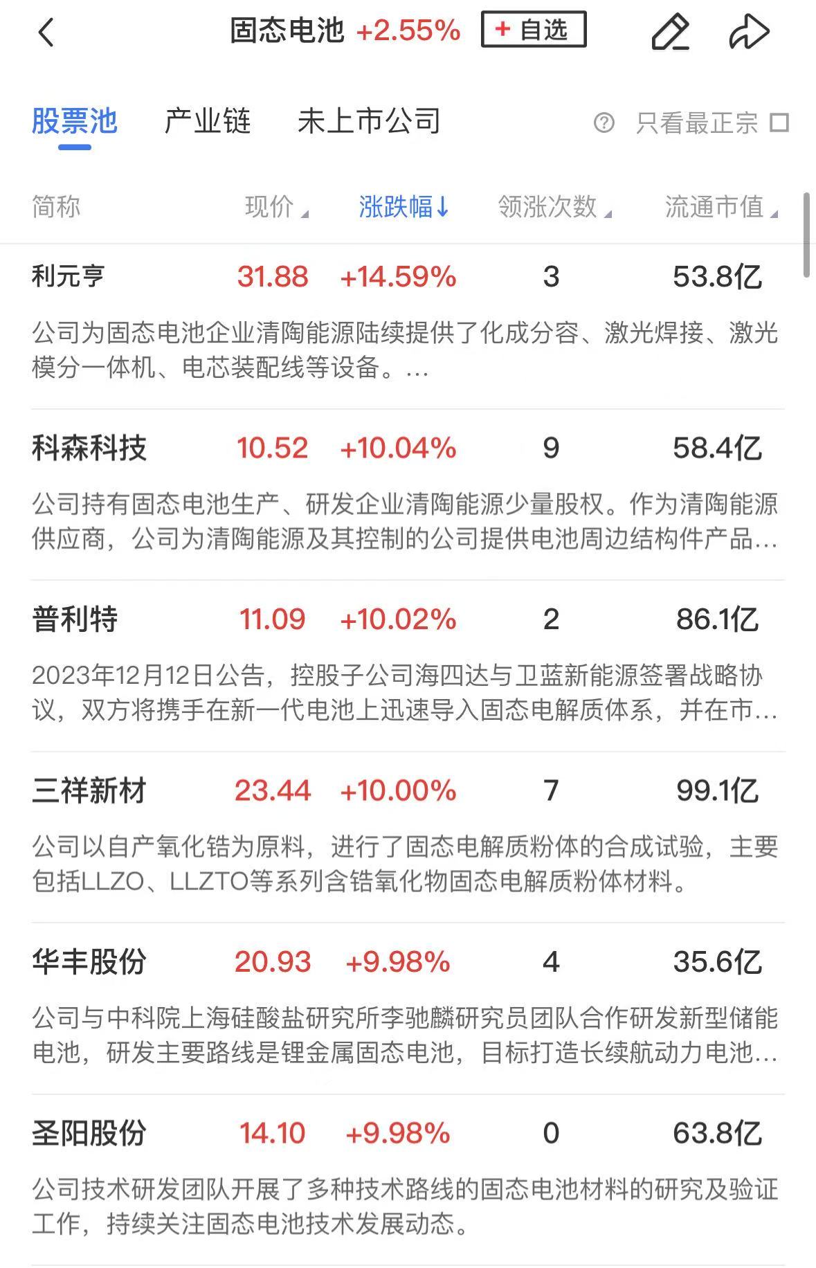 固态电池概念股表现活跃,圣阳股份、科森科技、普利特、三祥新材、华丰股份等涨停。