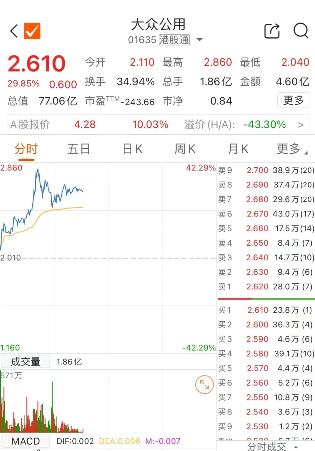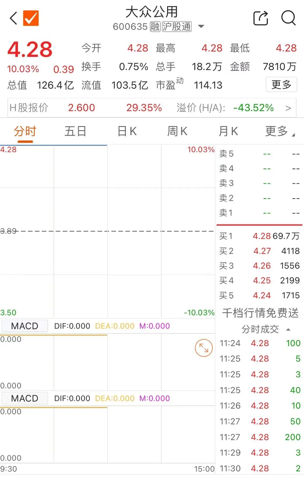 7月30日早盘,受益于无人驾驶出租车这一热点,大众公用AH股继续走强。继A股连收三个涨停板后,大众公用今日早盘再度涨停,走出四连板,报4.28元/股。港股方面,截至发稿涨近30%。