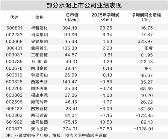 数据宝统计,截至3月17日,已有16家水泥上市公司发布2025年业绩相关报告。以年报、快报或预告区间中值统计,共计7家公司2025年实现盈利。华新建材、塔牌集团、尖峰集团、金隅冀东4家净利润超亿元,依次为28.25亿元、6.34亿元、4.6亿元、2.2亿元。
