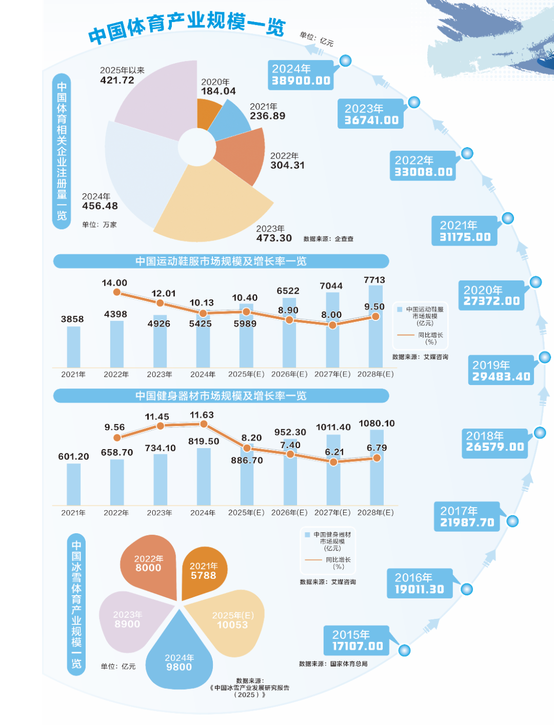 在政策支持下,我国体育产业正以惊人的速度实现由小众领域向支柱产业的跨越。根据国家体育总局数据,我国体育产业市场规模从2015年的1.71万亿元快速增长至2024年的3.89万亿元,年均复合增长率约为9.56%。
