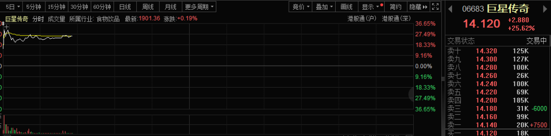 早盘,巨星传奇股价暴涨,一度涨超36%。