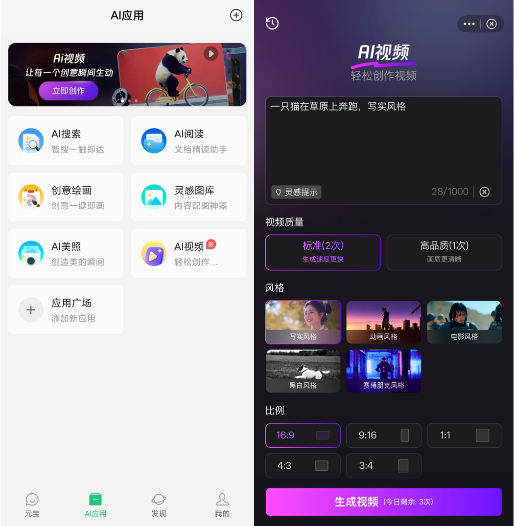 “用户只需要输入一段描述,即可生成视频,”腾讯混元相关负责人透露,目前的生成视频支持中英文双语输入、多种视频尺寸以及多种视频清晰度。目前该模型已上线腾讯元宝APP,用户可在AI应用中的“AI视频”板块申请试用。企业用户通过腾讯云提供服务接入,目前API同步开放内测申请。