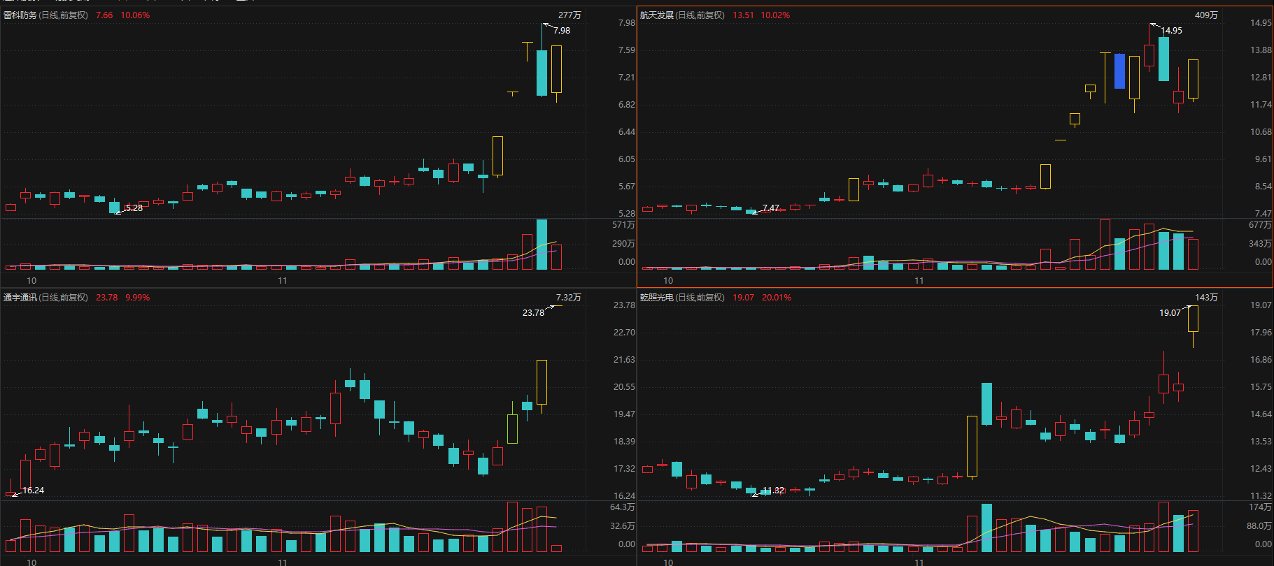 据国家航天局消息,该局已于近期设立商业航天司,相关业务正在逐步开展,标志着我国商业航天产业迎来专职监管机构,未来将持续推动我国商业航天高质量发展,产业链有望全线受益。二级市场方面,商业航天概念股表现活跃,截至周五收盘,航天发展11天7板,雷科防务5天4板,通宇通讯2连板,乾照光电、航天环宇20CM涨停,顺灏股份、四川金顶一字涨停。
