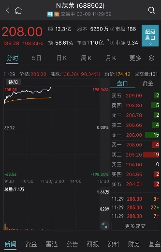 今天上午,N茂莱上涨198.34%,成为近期的一只大肉签。