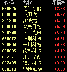 此外,国家大基金持股板块也涨幅居前,佰维存储上涨12.63%。