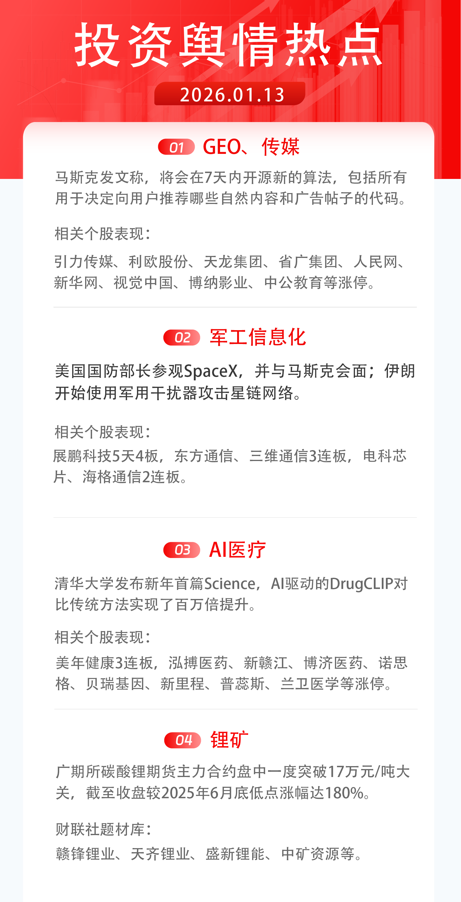 1月13日舆情热点:GEO、军工信息化、AI医疗