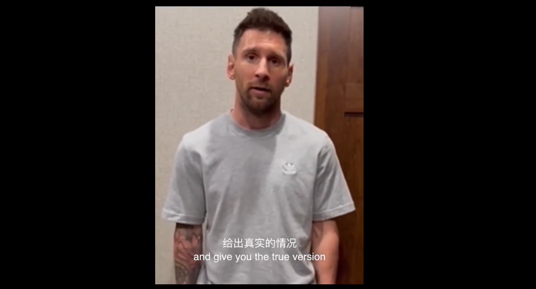 大家好,关于我在中国香港比赛后被提及的很多传言,我自己已经听说和看到过,录制这个视频,就是因为我想给出真相,希望大家不会再继续看到不实的消息。如球迷们所知,我永远想要参加每一场比赛,永远向往球场。我听到有人说我因为政治原因或一些其他因素拒绝参赛,对此我想说都不是真的,如果真是这样我甚至不会去日本,或者像之前那样多次访问中国。事实上早在职业生涯初期,我就与中国有着非常紧密和特别的缘分,无论是在巴塞罗那足球俱乐部,还是阿根廷国家队,我都多次来中国参赛,在这里的采访、比赛和活动,都给我留下了美好回忆。