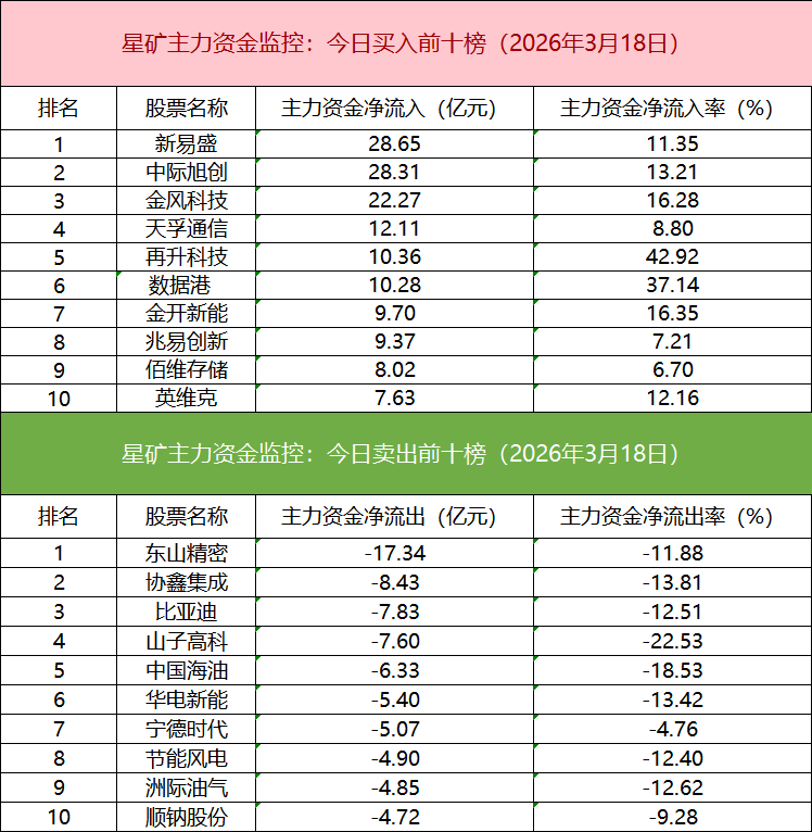 从个股主力资金监控数据来看,主力资金净流入前十的个股以算力产业链方向为主,新易盛净流入居首。