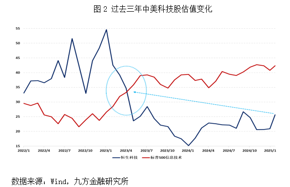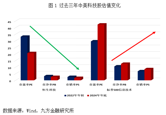本文回顾了过去两年中国科技股的价值重估进程。九方金融研究所认为虽然科技股短期回调引发投资者担忧,但基于中长期视角,中国科技股股价仍具备巨大潜力。2023年以来,市场中流行“堆算力”的思维定式,限制了投资者对中国AI革命的认知,导致中国科技资产被严重低估。2022年至2024年,恒生科技估值大幅下降,同期美股科技股估值却在不断上升,背后既有中国经济基本面阶段性下行的影响,更有科技领域的错误认知。如果市场正确看待中国科技的发展水平,即使经济阶段性下行现象短期没有消失,中国科技股的合理估值较当前水平仍有40%的提升空间。展望未来,被市场忽视的低利率因素将成为科技牛市的重要驱动因素,参考美国,在资本市场改革、政策支持、技术创新和外资流入等多重因素推动下,中国科技股有望迎来十年级别的长牛行情。