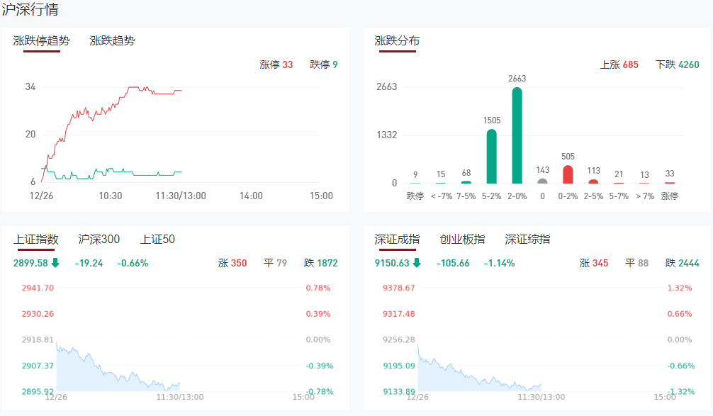 午评:创业板指跌1.47% 全市场超4300只个股下跌