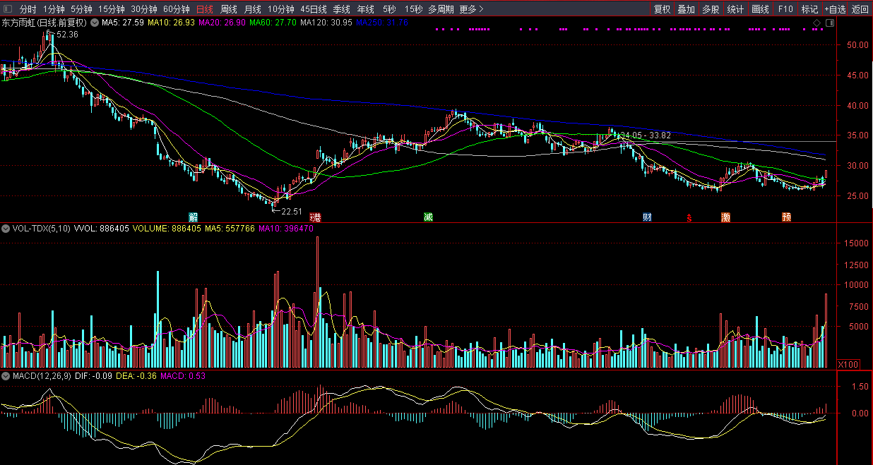 东方雨虹为建筑防水材料行业绝对龙头,大白马,QFII重仓、基金重仓股。股价低于最近一次(2022-04-28)定向增发价48.69元,折价率为40.2%。