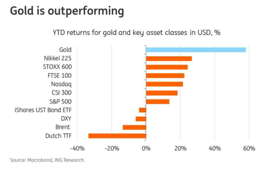 黄金牛市未完待续!ING预测:2026年均价看4325美元 这些因素继续撑盘