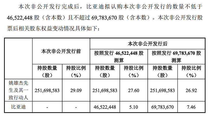 同时,比亚迪承诺,认购本次非公开发行的 A 股股票自本次发行结束之日起三十六个月内不得转让。