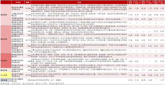 航天电子:公司立足航天军工,服务国民经济,主要从事军用电子专用产品、电线电缆产品研发与生产销售,业务涉及无人装备、物联网、惯性导航、遥测遥控、集成电路、机电组件、电线电缆等七大板块。主要产品包括军民用无人机系统、精确制导武器系统;测控通信系统、遥感信息系统、卫星应用等系统级产品;军民用惯性导航产品、卫星导航产品、遥测遥控设备、精确制导与电子对抗设备、计算机技术及软硬件等专业设备;军民用集成电路、传感器、继电器、电连接器、微波器件、精密机电产品;民用电线电缆及军用特种电缆等产品;智慧城市、智慧政务、智慧农业等系统解决方案。