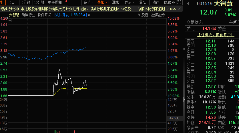 昨日收盘后,大智慧第二大股东湘财股份发布公告,湘财股份共持有2.54亿股大智慧股份,占其总股本的12.66%,公司拟通过集中竞价、大宗交易及协议转让等方式减持大智慧股份,交易价格根据大智慧二级市场交易价格确定,不低于9元/股。