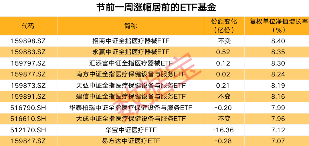 节前医疗类ETF净值涨幅霸榜 资金出现高抛低吸