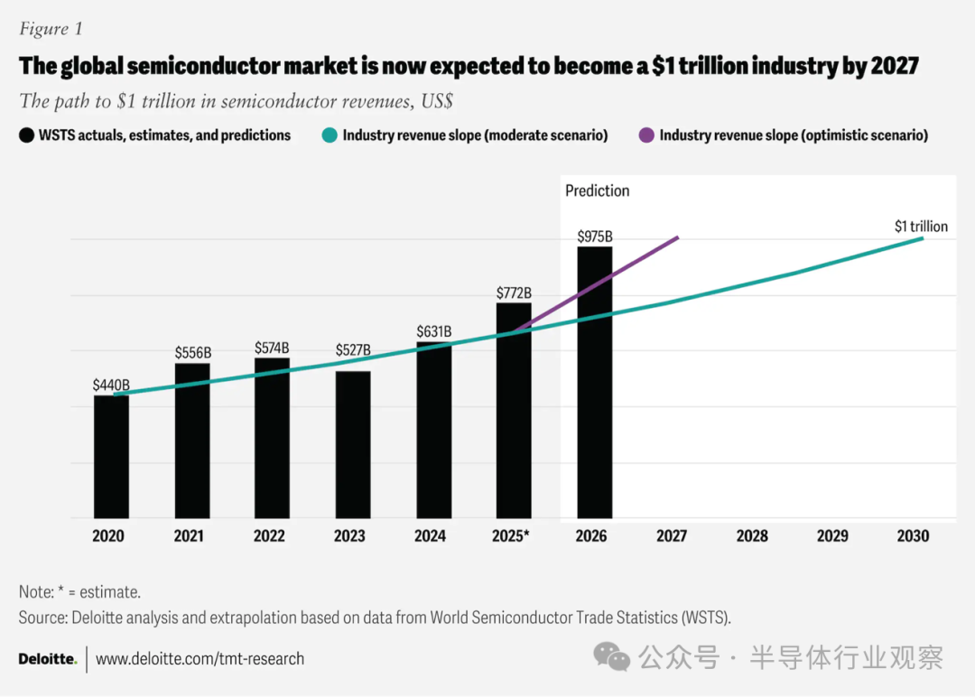 全球半导体行业预计到2026年年销售额将达到9750亿美元,创历史新高,这主要得益于人工智能基础设施建设的蓬勃发展(图1)。