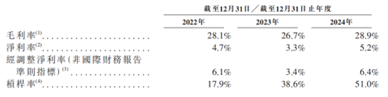 此外,公司对大客户依赖较强,于2022年、2023年及2024年,公司来自前五大客户的收入分别为14.39亿元、8.85亿元及14.21亿元,分别占公司收入的42.3%、28.8%及41.1%。同期来自最大客户的收入分别为6.56亿元、5.05亿元及7.59亿元,分别占总收入的19.3%、16.5%及22.0%。