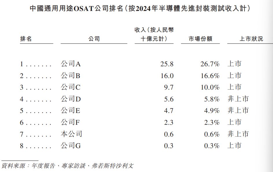 以2024年收入计算,芯德半导体在中国通用用途半导体OSAT中排名第七,市场份额约为0.6%。此外,芯德半导体也是该领域排名前八的公司里成立时间最晚的玩家。值得肯定的是,在成立5年多时间里,芯德半导体已经在细分领域取得了强劲的增长表现,但横向对比同业,也不难发现其与行业头部差距并不小。以去年的数据来看,国内通用用途半导体OSAT前三大参与者的市占率合计超过了50%,一定意义上可以说是断档式领先的存在。