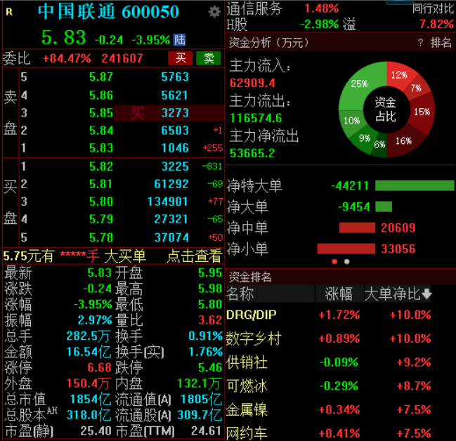 4月19日,中国联通大幅低开,截至发稿,该股跌近4%,报5.83元。港股方面,中国联通H股跌超3%。
