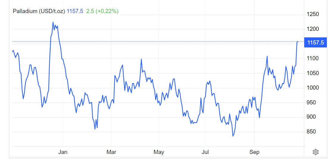 一项潜在的严峻供应紧缩正在为长期以来价格萎靡的钯金创造全新的上行动力,自2022年以来持续徘徊于谷底的钯金价格,在北京时间周五凌晨突破每盎司1150美元,单个交易日的涨幅超过10%,对于钯金价格来说实属罕见。在媒体报道称美国政府要求七国集团(G7)盟友们考虑对来自俄罗斯的钯与钛实施制裁后,长期处于颓势的钯金命运似乎发生大转变。