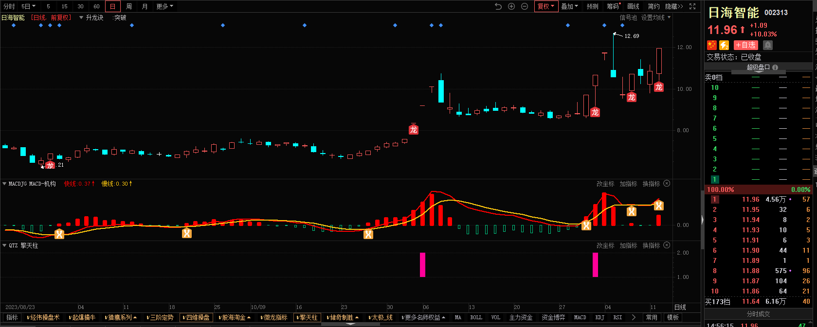 3)参考技术指标:日海智能-升龙诀指标-出现龙信号