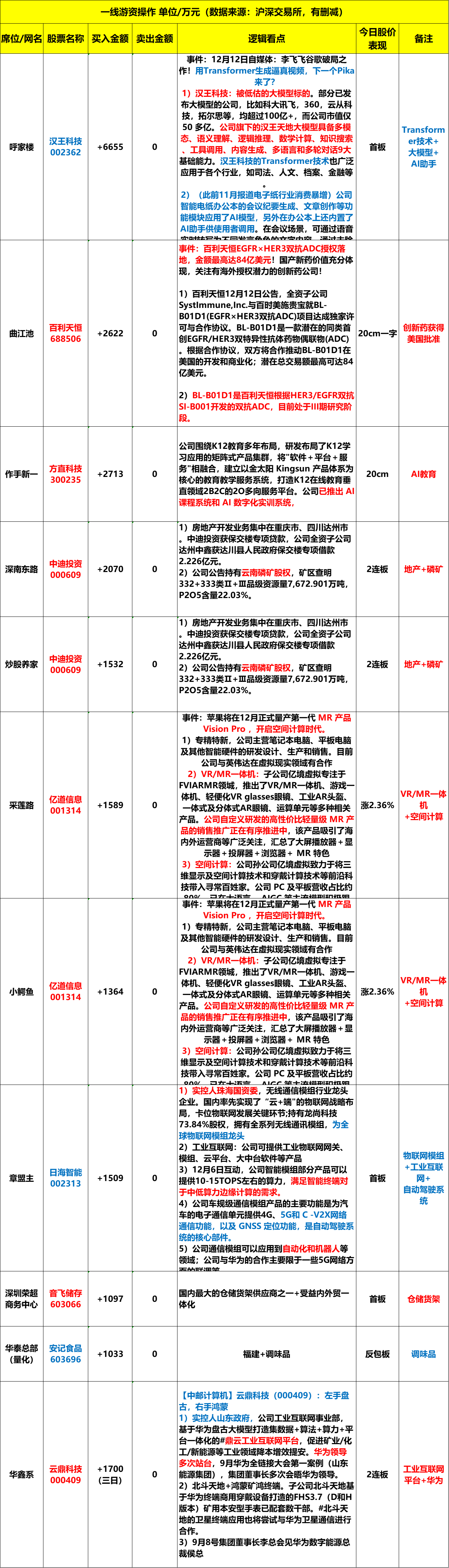 2023年12月12日,周二,龙虎榜解析。
